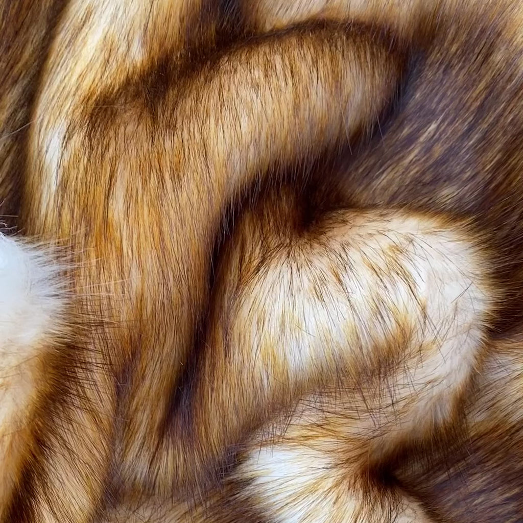 This is a high quality faux fur in a gorgeous combination of a creamy base colour with a rich multi-tonal burnt toffee coloured tip. This fabric has a long straight 40-50mm pile.