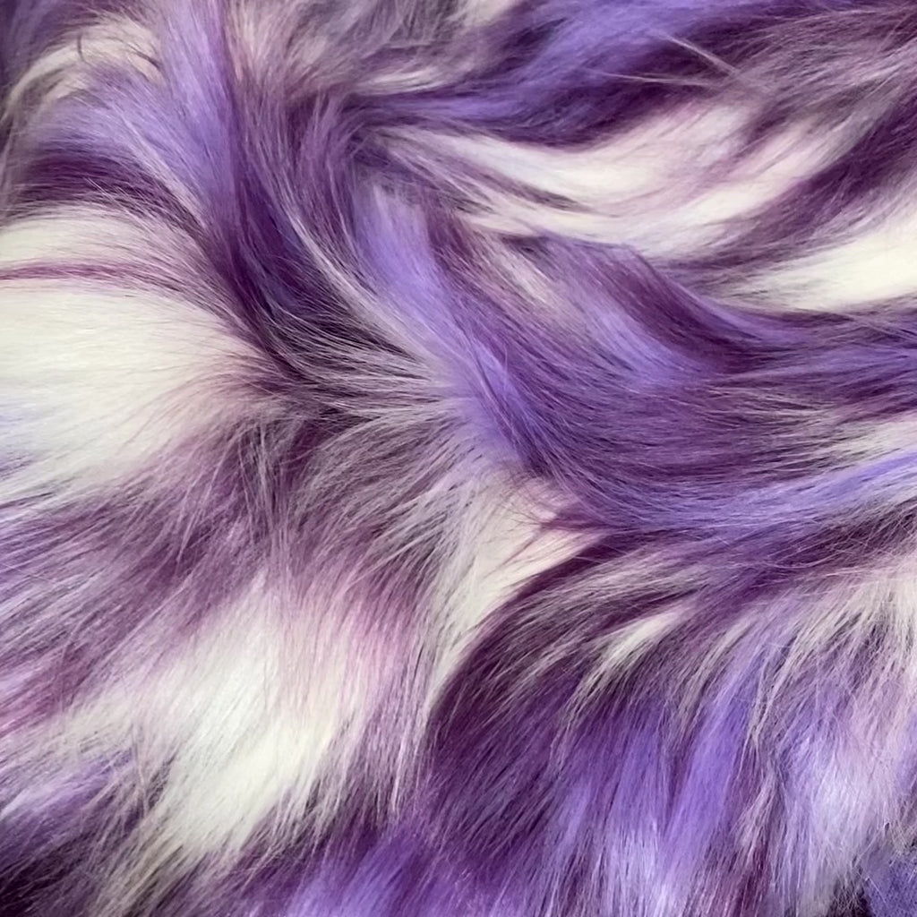 This is a high quality multi-tonal purple faux fur with a long straight 80-90mm pile. Each colour has its own section, and as the colour segments overlap throughout the pile it gives the illusion of many different purple tones all blending together.